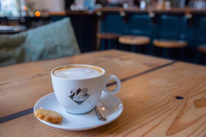 Op een van de vele hoeken op het plein, vind je dit fijne plekje. Hoge plafonds, oud houten vloeren, een lekker zitje buiten (zeker straks in de zomer!) en vanuit de ruimte mooi uitzicht op de kerk. Van binnen een echt koffieplekgevoel: zwarte houten meubelen met kussens, veel bloemen, wat leesmateriaal en een grote bar. Achter de bar – toen wij er waren – staan moeder en dochter. Superleuk!
