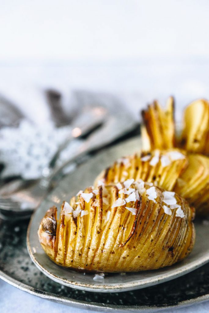 De naam Hasselback komt van het Zweedse 18e-eeuwse restaurant Hasselbacken in Stockholm. Dat bestaat nog steeds. Hier begonnen ze met deze nieuwe bereidingswijze van aardappels en geloof me, deze variant is bijna net zo lekker als patat 🙂 En dankzij zijn luxe uitstraling kan de Hasselback-aardappel ook prima op de feesttafel als bijgerecht voor kerst of Pasen. Enjoy!