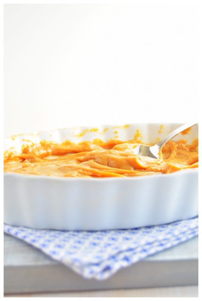 Ik ben een zoetekauw. Toch ben ik niet zo’n fan van dingen bakken. Waar ik voor het avondeten en de lunch best creatief nieuwe gerechten kan bedenken, lukt me dat met bakken eigenlijk nooit. Ik volg liever recepten. Waarschijnlijk komt dat omdat juist bakken vraagt om niet te creatief om te springen met de hoeveelheden. Goed bakken vereist perfectionisme en het tot op de letter nauwkeurig volgen van een recept en de hoeveelheden. Ik ben daar niet zo goed in. Zo zijn er een aantal recepten waar ik me ver van houd en die je dus niet zo snel op dit blog zult vinden. Ik zal niet zo snel heel ingewikkelde taarten of cakes maken. Zelf karamel maken staat ook nog steeds op mijn to-cooklijstje, maar ik vind het doodeng. Hete suiker, niet roeren en wachten… dat is niet aan mij besteed. Daarom heeft het ook zo lang geduurd voordat ik zelf dulce de leche maakte. Deze dikke karamel is zo ontzettend lekker en veelzijdig en, in tegenstelling tot karamel gemaakt van suiker en room, heel makkelijk te maken. Ik kreeg deze tip al enkele jaren geleden, maar toen had ik geen oven. Nu ik bij ‘de man’ woon heb ik een grote oven tot mijn beschikking en maak ik best vaak dulce de leche. Enjoy!